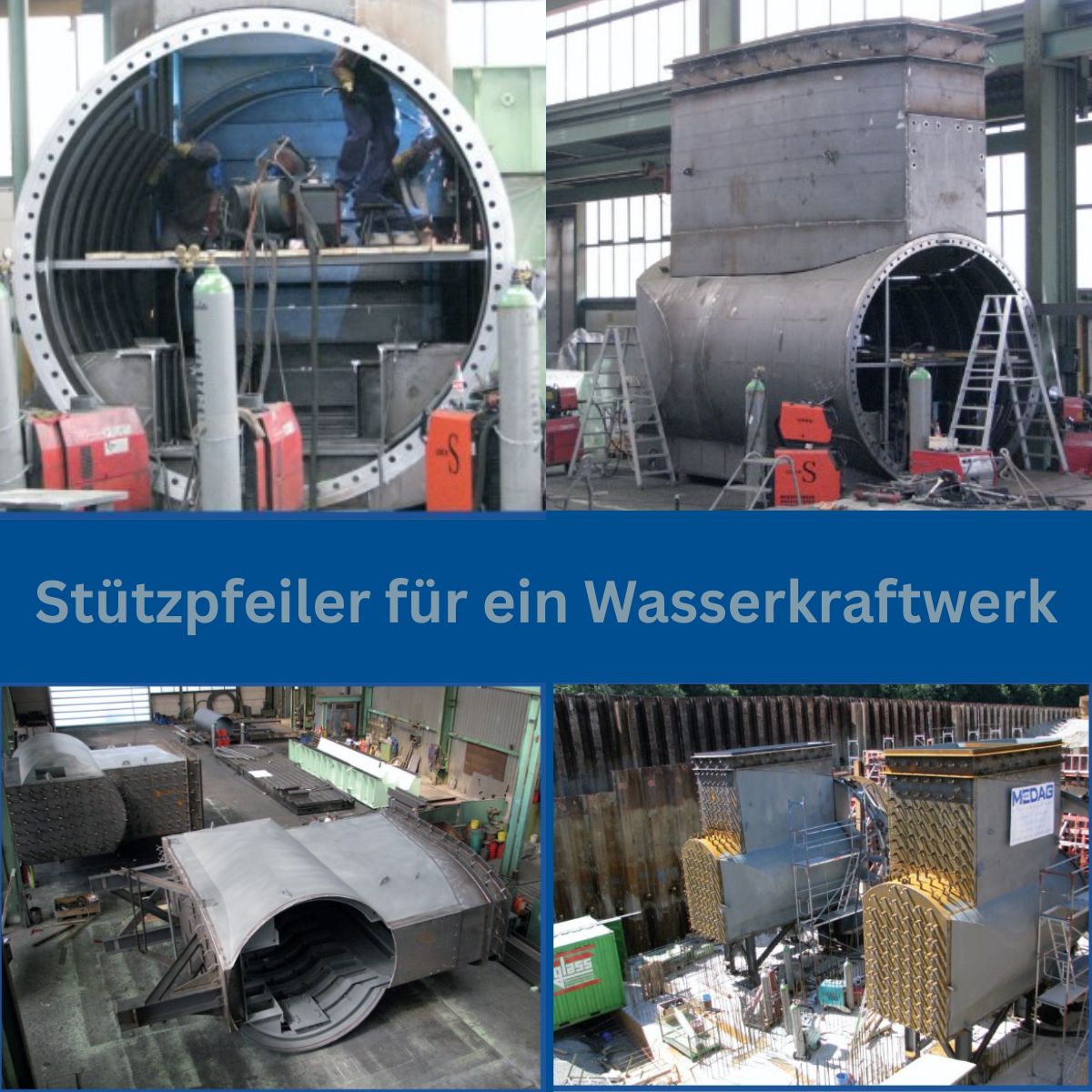 Für ein Wasserkraftwerk haben wir massive Stützpfeiler gefertigt, die auf Bodenplatten